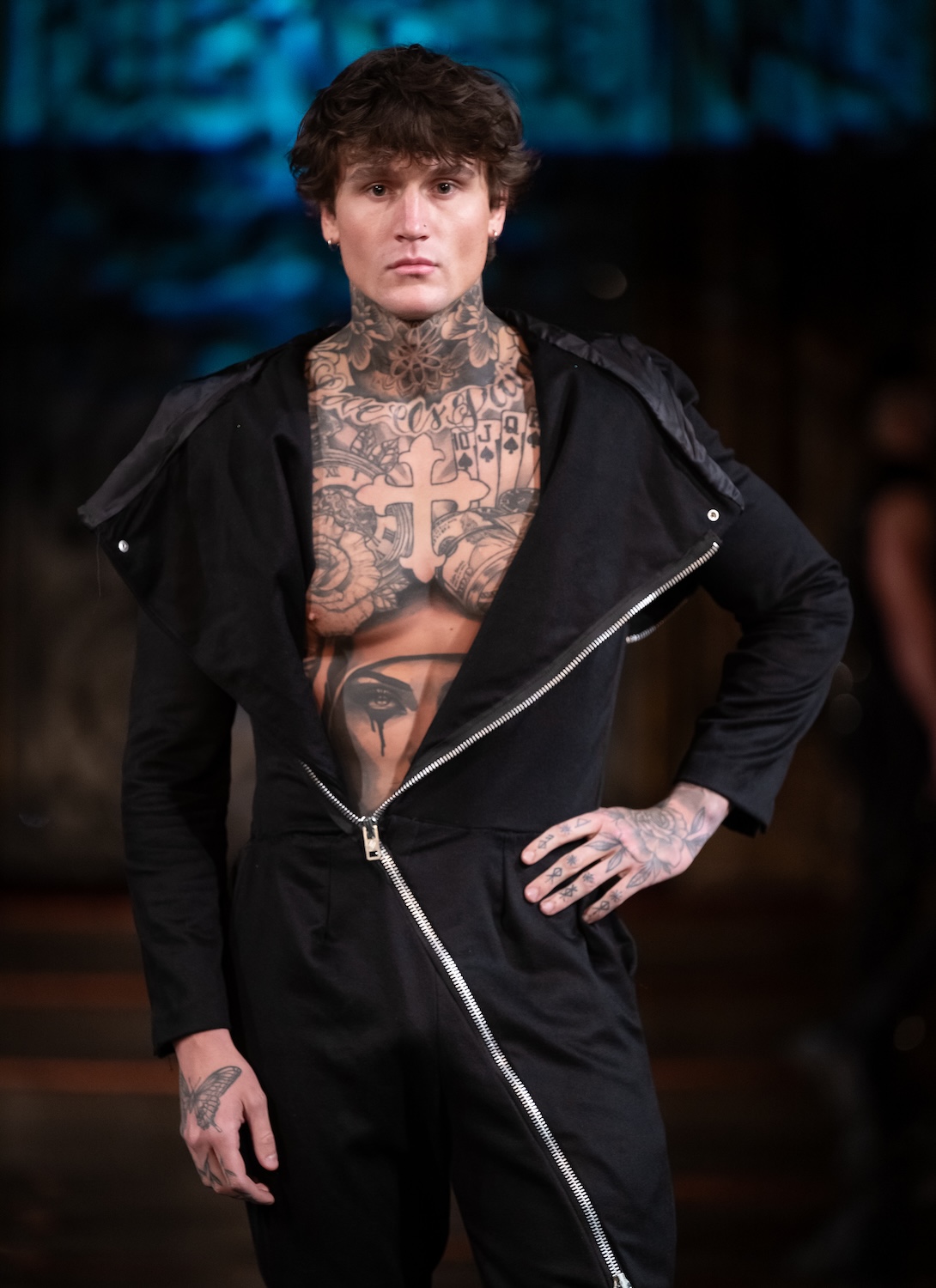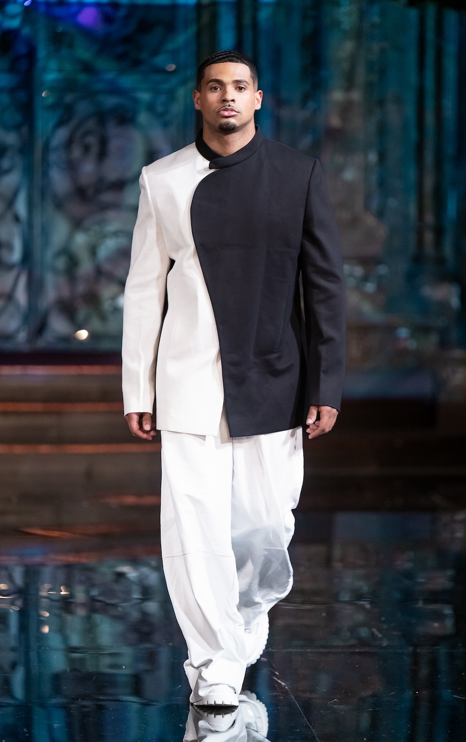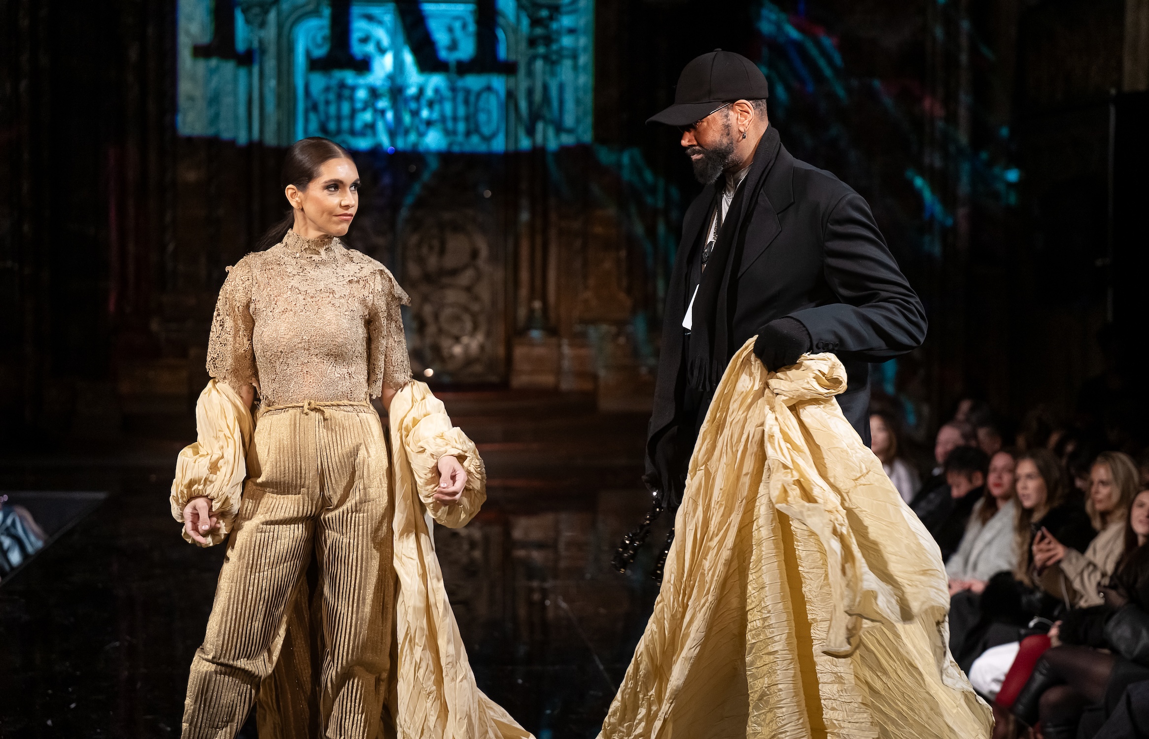 NEW YORK, NEW YORK - FEBRUARY 12: Designer Franklin Rowe and model walk the runway at the Franklin Rowe show during New York Fashion Week Powered By Art Hearts Fashion at The Angel Orensanz Foundation on February 12, 2026 in New York City. (Photo by Mark Gunter/Getty Images for Art Hearts Fashion)