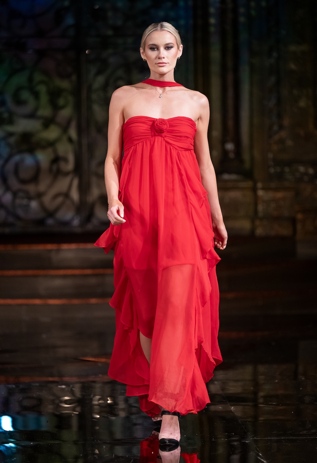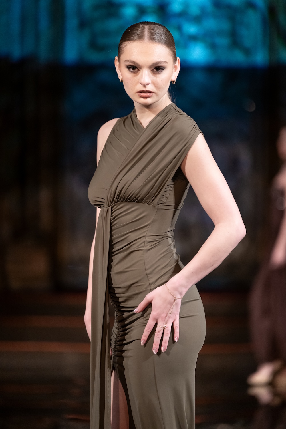 NEW YORK, NEW YORK - FEBRUARY 08: Model Anya Boyd walks the runway at the NIF Global x London School of Trends show during New York Fashion Week Powered By Art Hearts Fashion at The Angel Orensanz Foundation on February 08, 2025 in New York City. (Photo by Arun Nevader/Getty Images for Art Hearts Fashion)