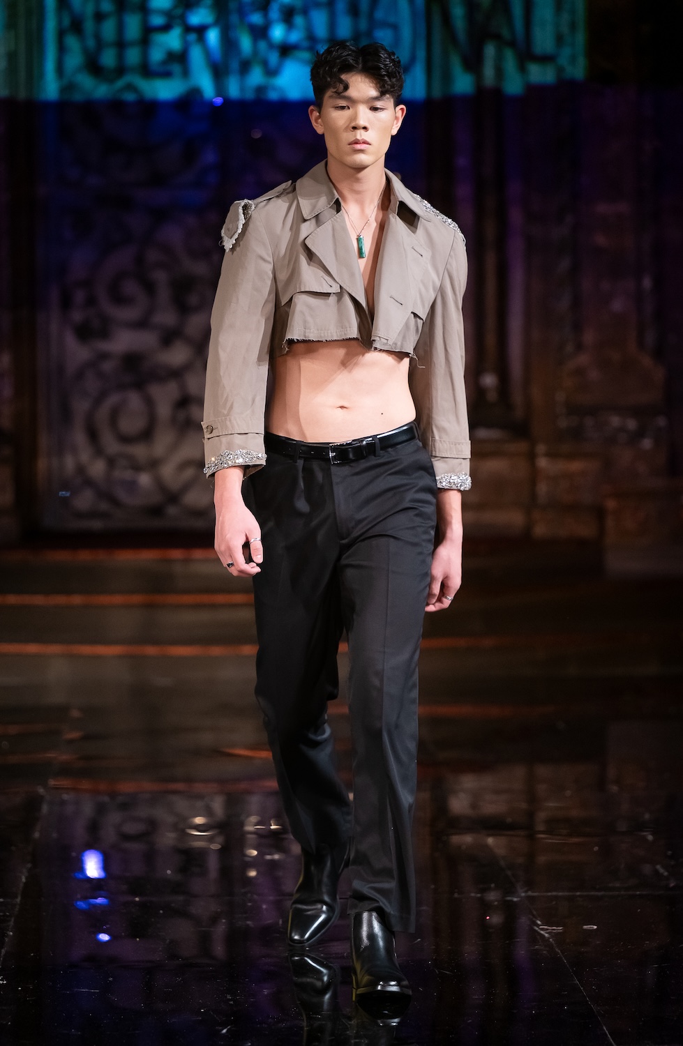 NEW YORK, NEW YORK - FEBRUARY 13: A model walks the runway at the Kentaro show during New York Fashion Week Powered By Art Hearts Fashion at The Angel Orensanz Foundation on February 13, 2026 in New York City. (Photo by Mark Gunter/Getty Images for Art Hearts Fashion)