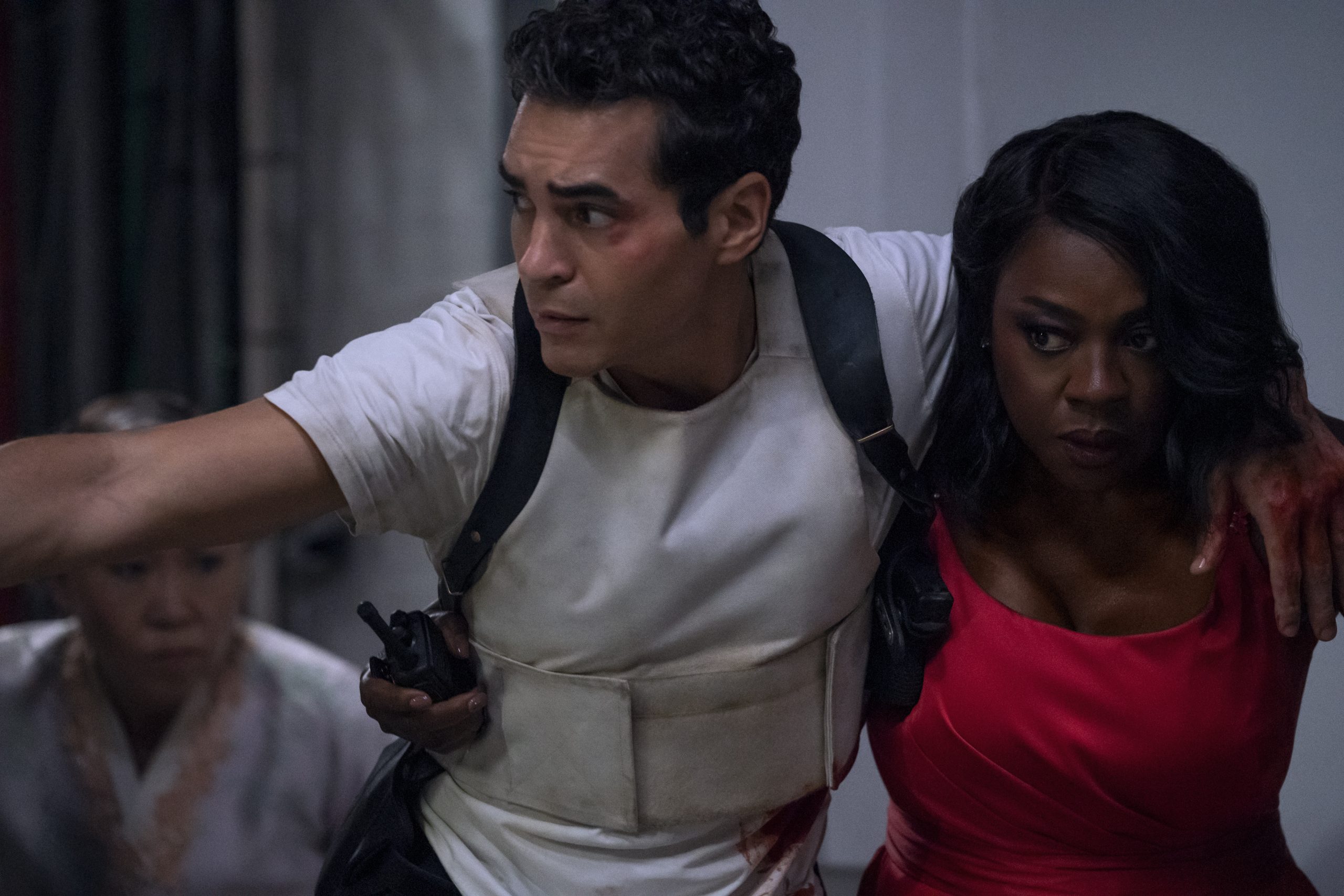Viola Davis and Ramoon Rodriiguez in G20 (Photo Credit: Ilze Kitshoff / Prime Video Amazon Content Services LLC)