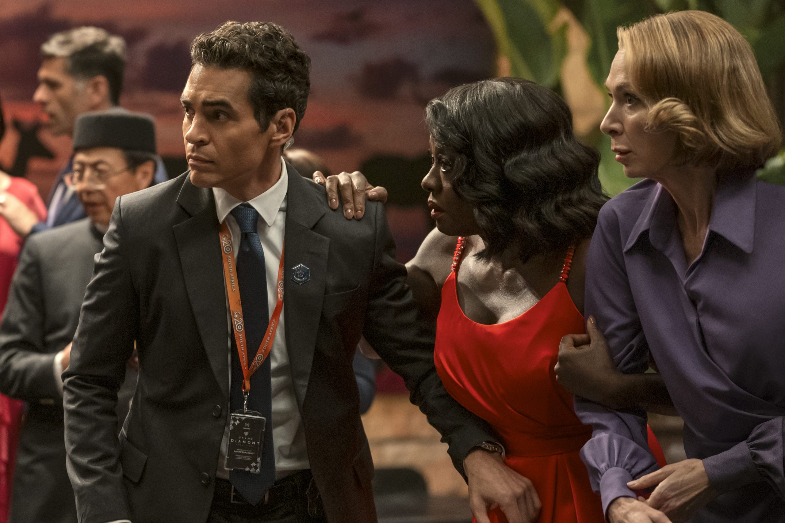 Douglas Hodge MeeWha Alana Lee Viola Davis in G20 (Photo Credit: Ilze Kitshoff / Prime Video Amazon Content Services LLC)