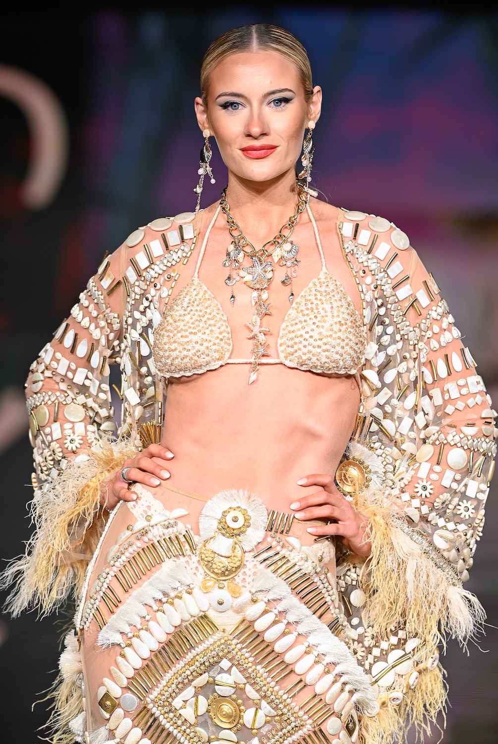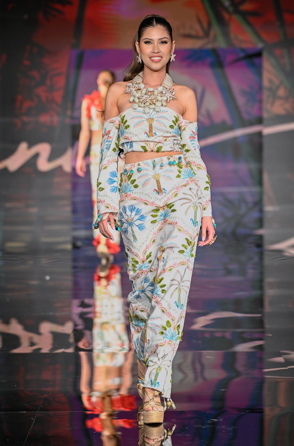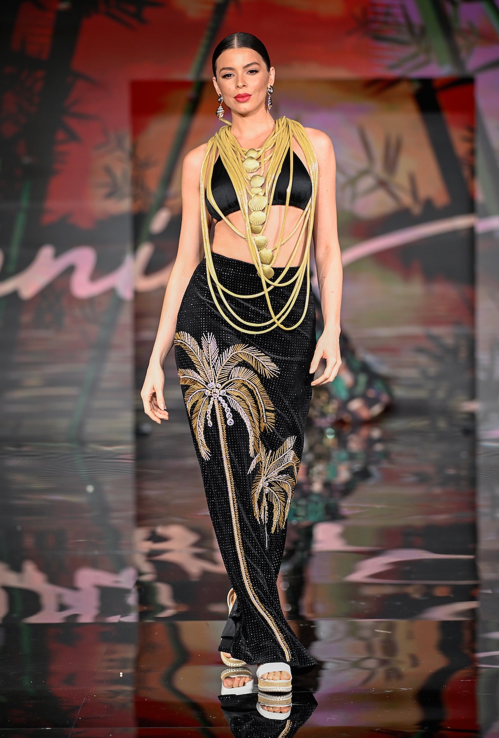 MIAMI BEACH, FLORIDA - MAY 29: Models perform on the runway at the Giannina Azar show during Miami Swim Week Powered By Art Hearts Fashion at Eden Roc Hotel on May 29, 2025 in Miami Beach, Florida. (Photo by Arun Nevader/Getty Images for Art Hearts Fashion)