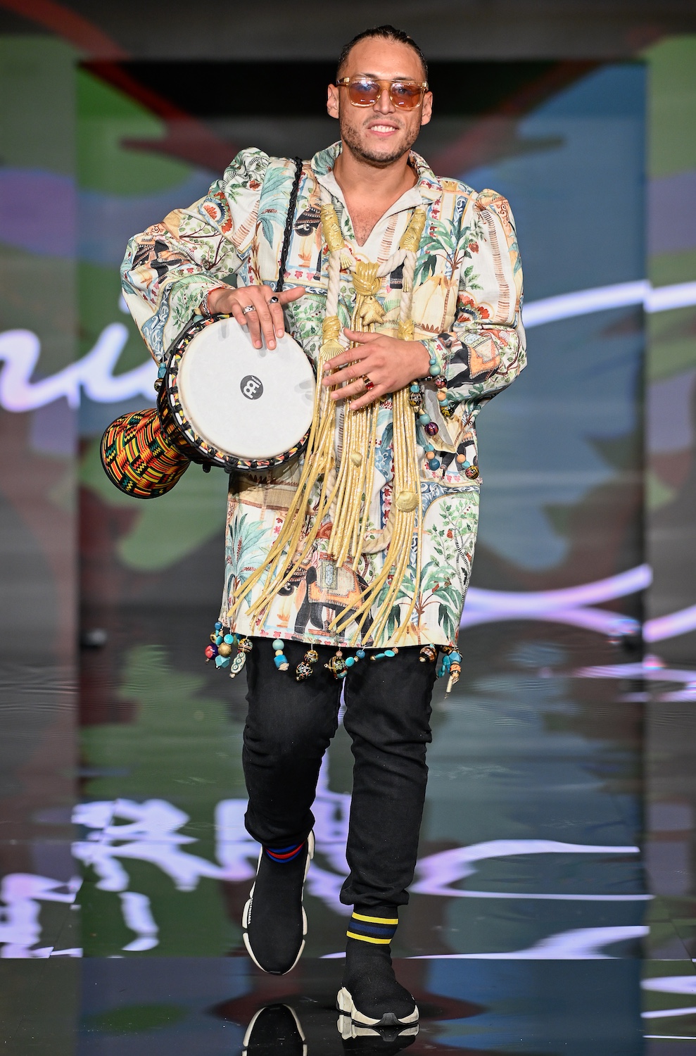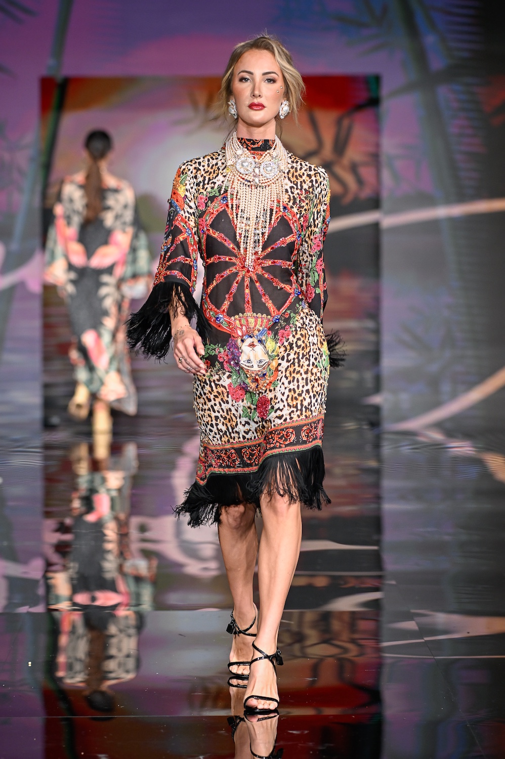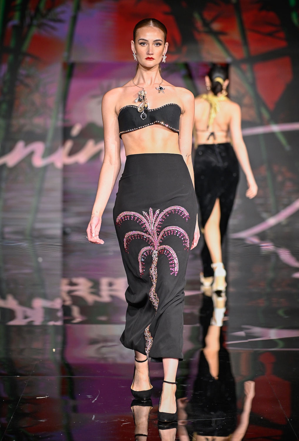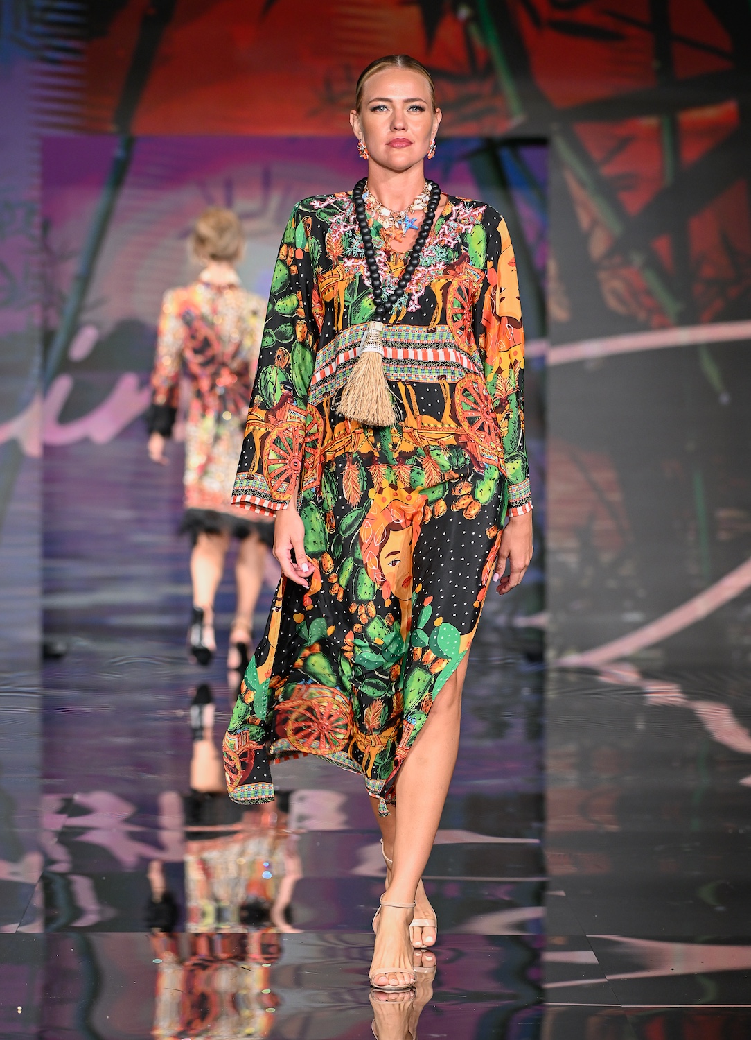 MIAMI BEACH, FLORIDA - MAY 29: Models perform on the runway at the Giannina Azar show during Miami Swim Week Powered By Art Hearts Fashion at Eden Roc Hotel on May 29, 2025 in Miami Beach, Florida. (Photo by Arun Nevader/Getty Images for Art Hearts Fashion)