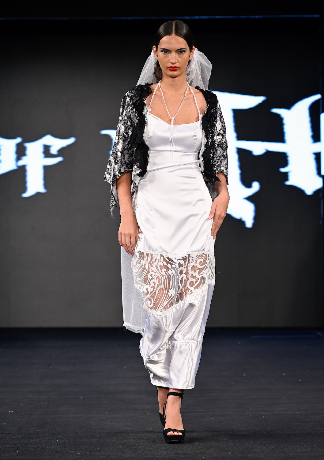 NEW YORK, NEW YORK - FEBRUARY 07: Madison Curtis walks the runway at the Lena Mars show during New York Fashion Week Powered By Art Hearts Fashion at The Angel Orensanz Foundation on February 07, 2025 in New York City. (Photo by Arun Nevader/Getty Images for Art Hearts Fashion)