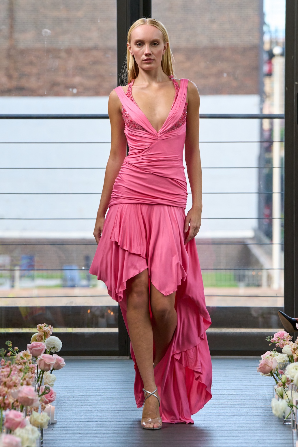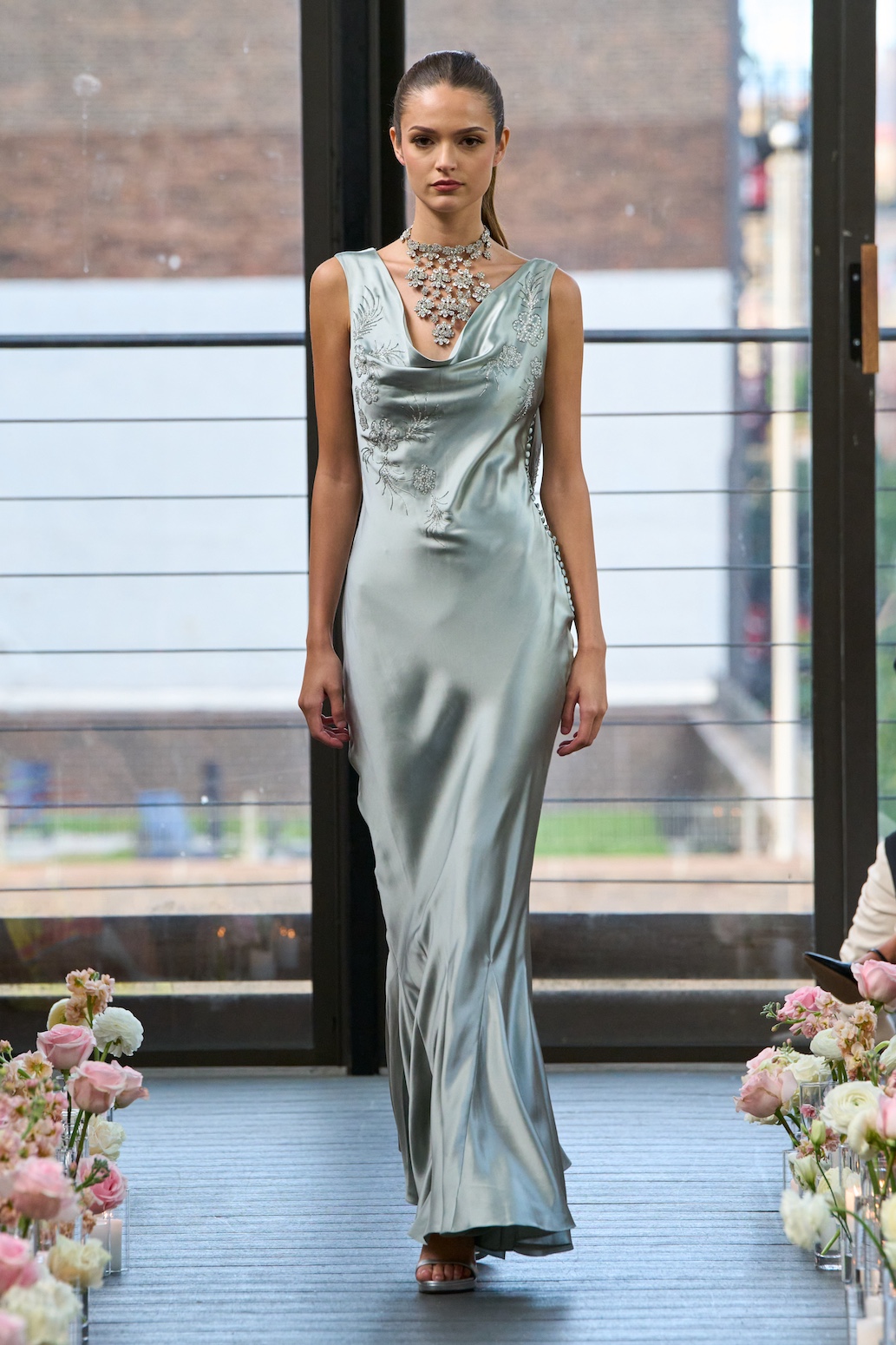 This season’s runway showcased the debut of Janet Mandell’s advanced technology platform, which integrates a Distribution API, the Bestow Consignment Model, and AI-driven SaaS solutions. The Bestow model empowers clients to consign their wardrobes, prolong garment life through rentals, and ultimately sell pieces to the right buyers. Each showroom is equipped with expert tailors, ensuring every garment receives meticulous care and alterations with the precision of a couture atelier.