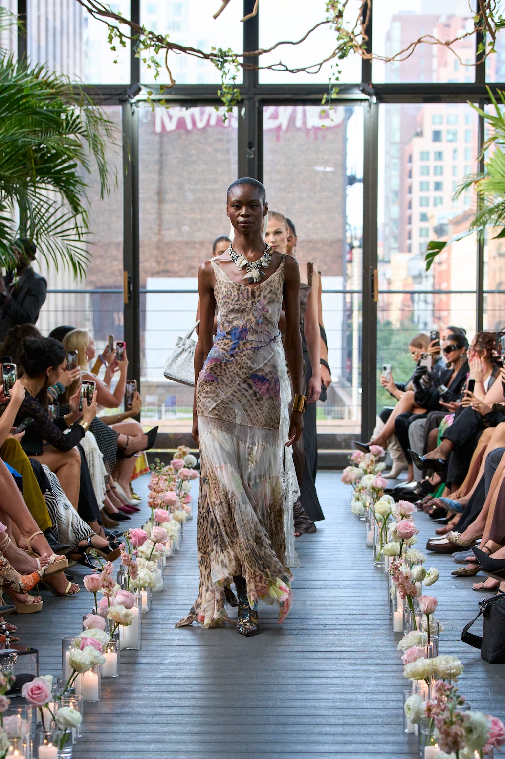 The runway pulsed with energy as models stepped out in rare archival looks from the 90s and early 2000s, featuring iconic designs by Roberto Cavalli, Christian Dior by John Galliano, Gucci by Tom Ford, and Gianni Versace. Guests leaned forward as the era’s daring cuts, bold prints, and unmistakable glamour took center stage, sparking instant conversation about which looks they would claim for their next red carpet moment. By presenting true vintage from fashion’s most legendary houses, the show delivered one of the season’s most unforgettable statements.