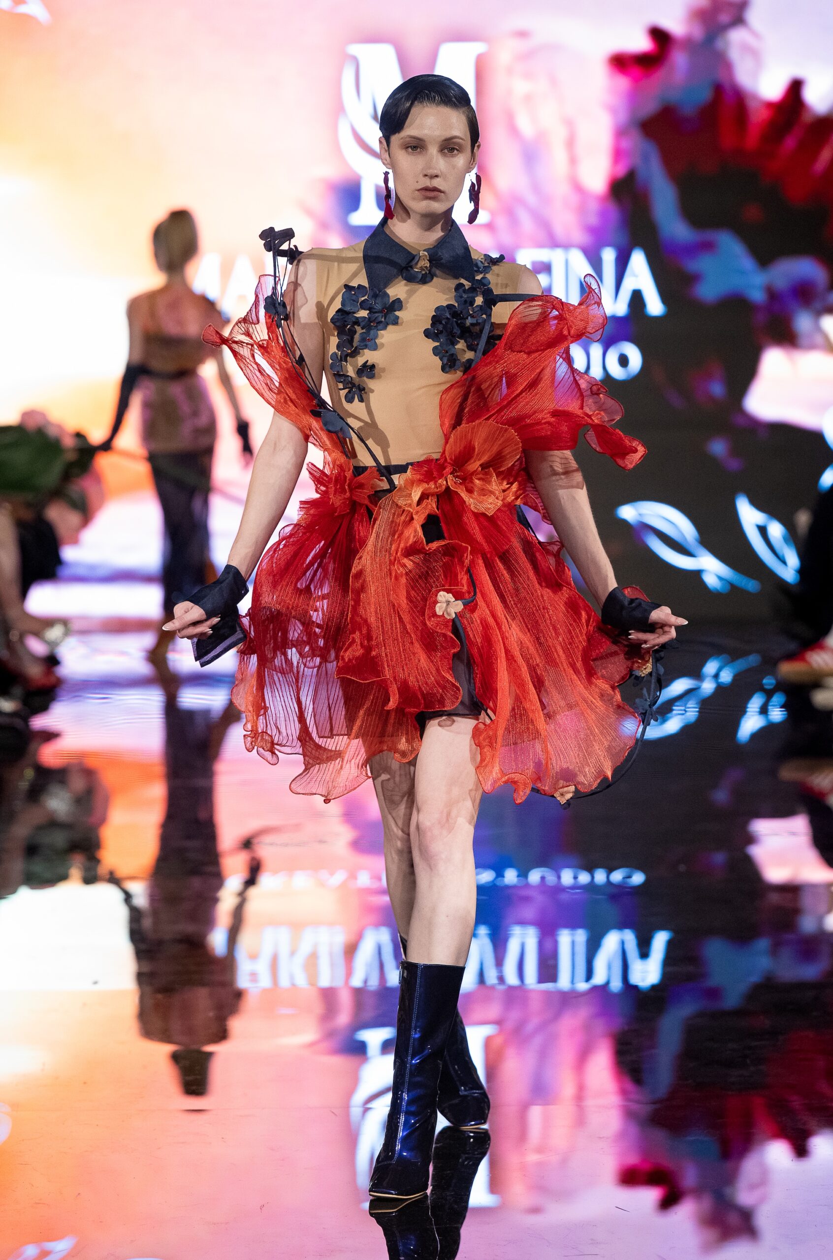 The collection highlights Marina Safina’s design aesthetic, featuring modern silhouettes, detailed craftsmanship, and standout runway looks captured during the show.
