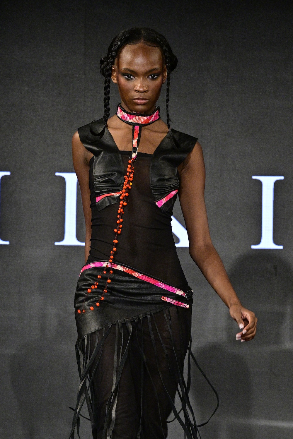 NEW YORK, NEW YORK - SEPTEMBER 12: A model walks the runway at the Edher Gin show during New York Fashion Week Powered By Art Hearts Fashion at The Angel Orensanz Foundation on September 12, 2025 in New York City. (Photo by Mark Gunter/Getty Images for Art Hearts Fashion)