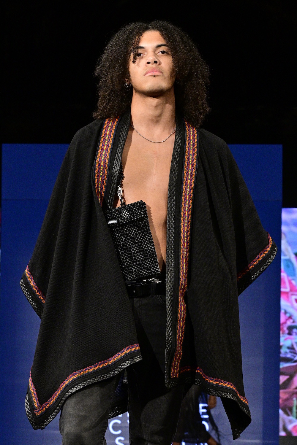 NEW YORK, NEW YORK - FEBRUARY 06: A model walks the runway at the Kenneth Barlis show during New York Fashion Week Powered By Art Hearts Fashion at The Angel Orensanz Foundation on February 06, 2025 in New York City. (Photo by Arun Nevader/Getty Images for Art Hearts Fashion)