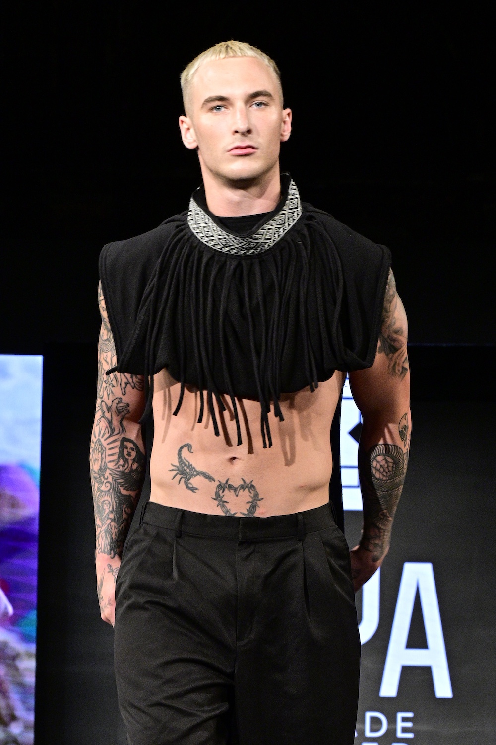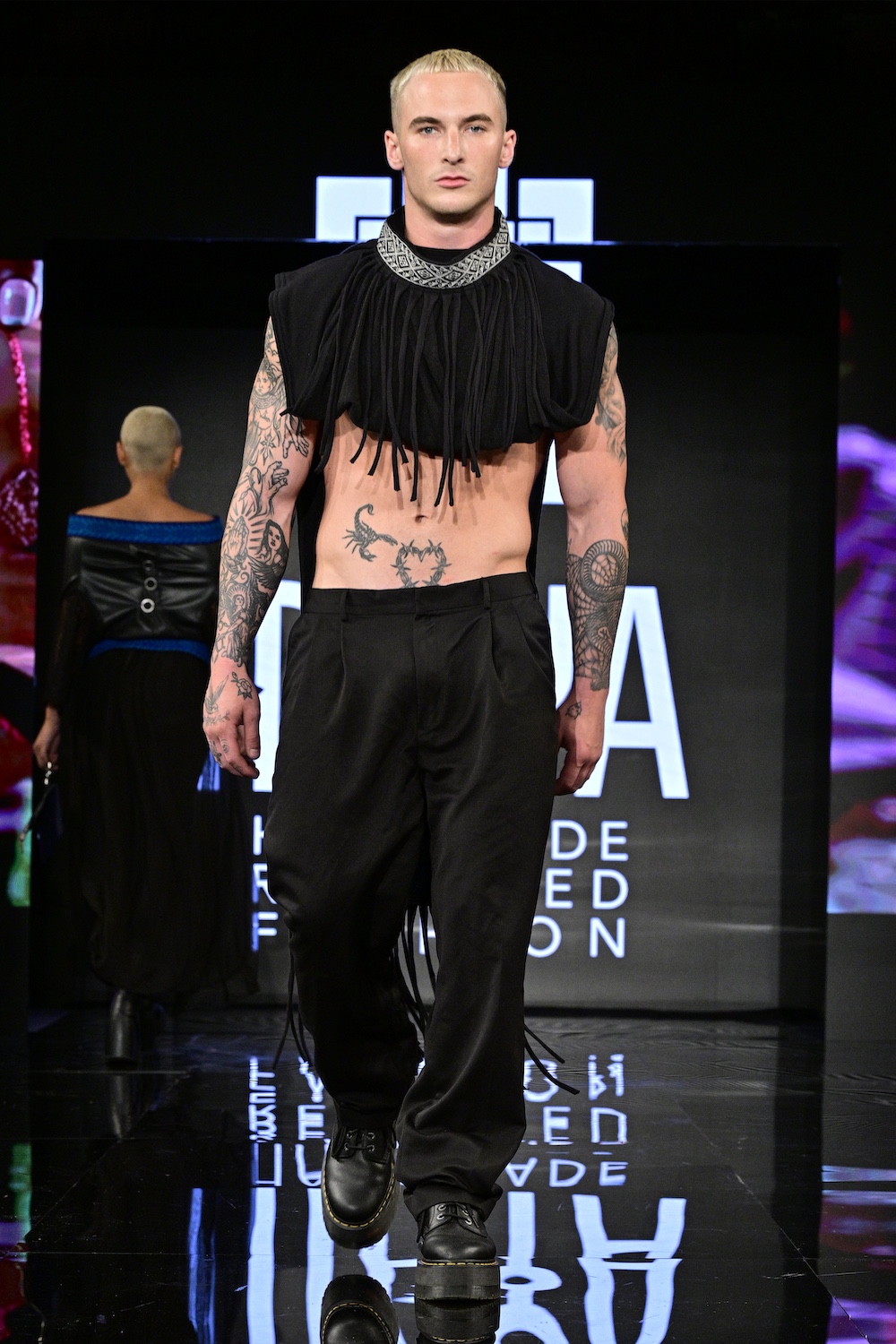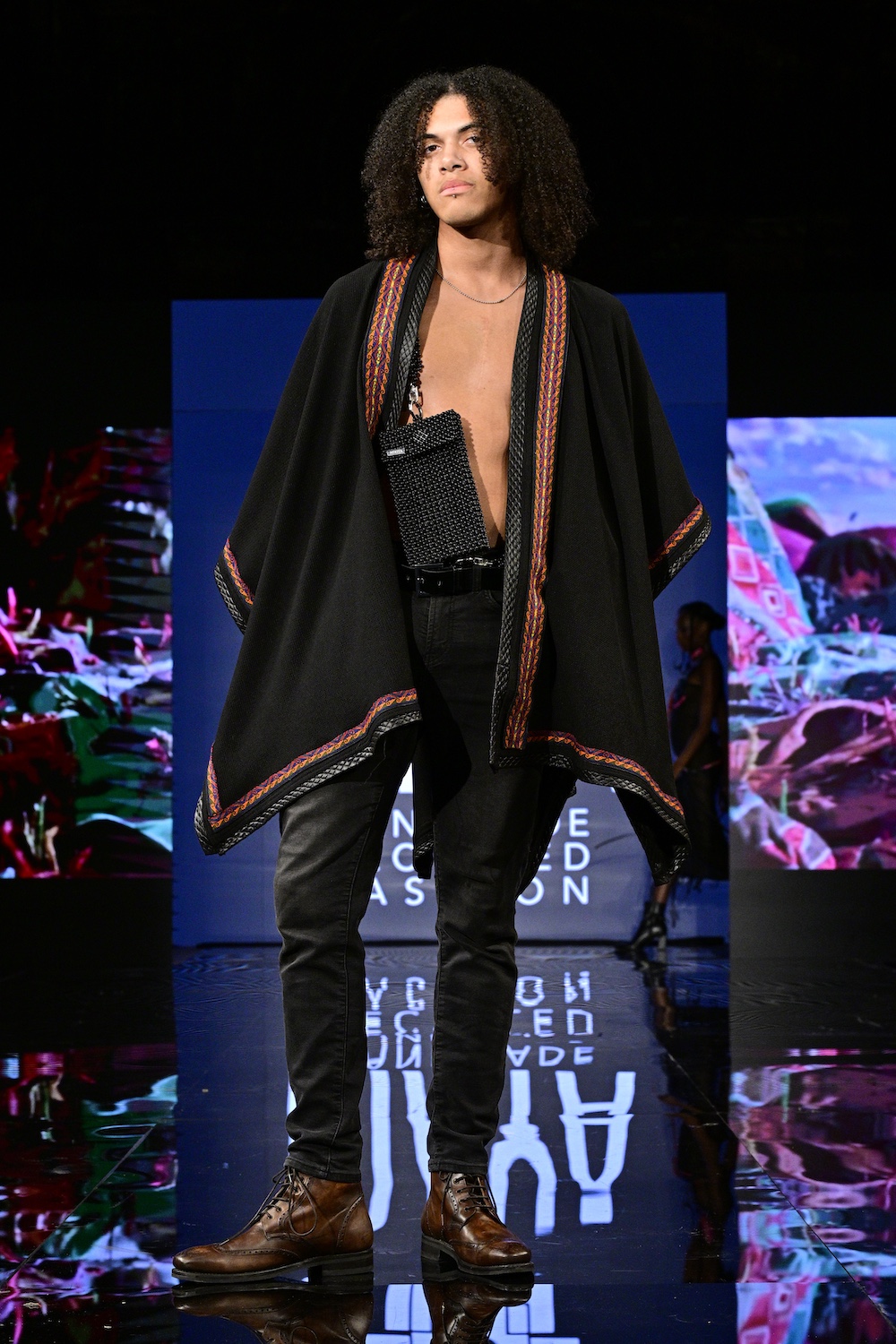 NEW YORK, NEW YORK - SEPTEMBER 11: A model walks the runway for Kenneth Barlis during New York Fashion Week Powered By Art Hearts Fashion at The Angel Orensanz Foundation on September 11, 2025 in New York City. (Photo by Eugene Gologursky/Getty Images for Art Hearts Fashion)