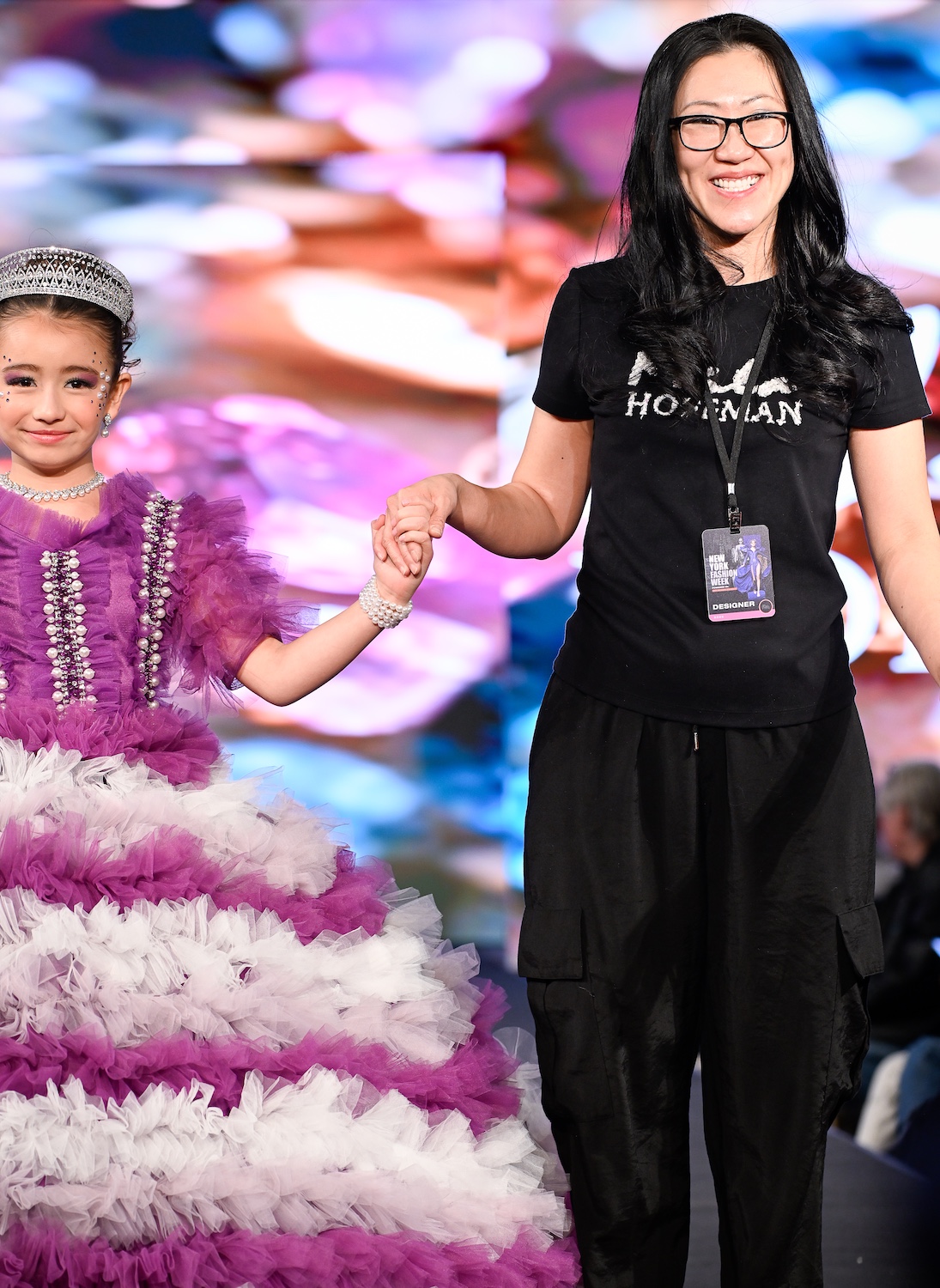 NEW YORK, NEW YORK - FEBRUARY 08: Designer (R) Mila Hoffman and model walk the runway at the Mila Hoffman show during New York Fashion Week Powered By Art Hearts Fashion at The Angel Orensanz Foundation on February 08, 2025 in New York City. (Photo by Arun Nevader/Getty Images for Art Hearts Fashion)
