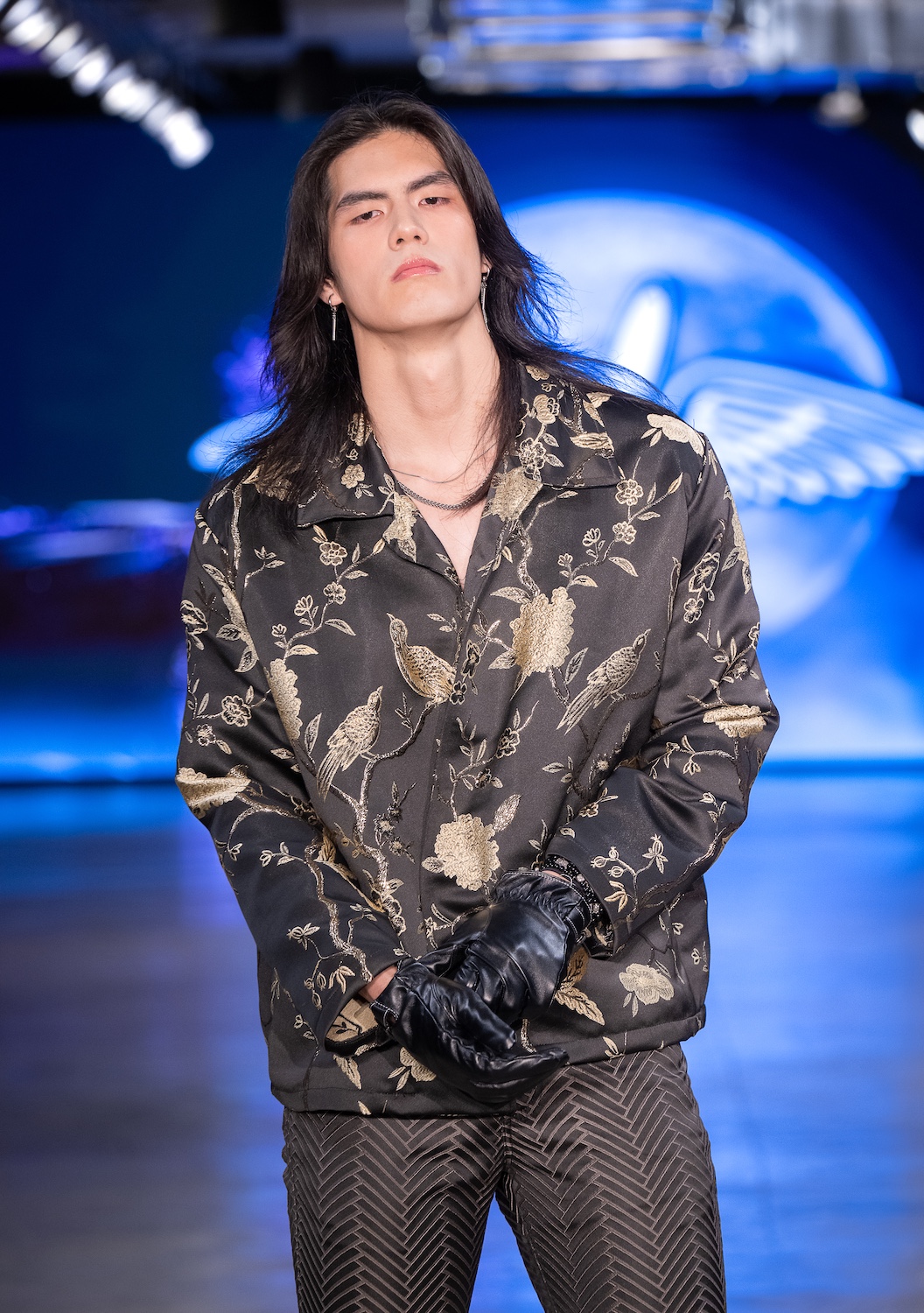 LOS ANGELES, CALIFORNIA - OCTOBER 18: Model Kenji Palates walks the runway at the Mister Triple X show during Los Angeles Fashion Week Powered By Art Hearts Fashion at The New Mart on October 18, 2025 in Los Angeles, California. (Photo by Mark Gunter/Getty Images for Art Hearts Fashion)