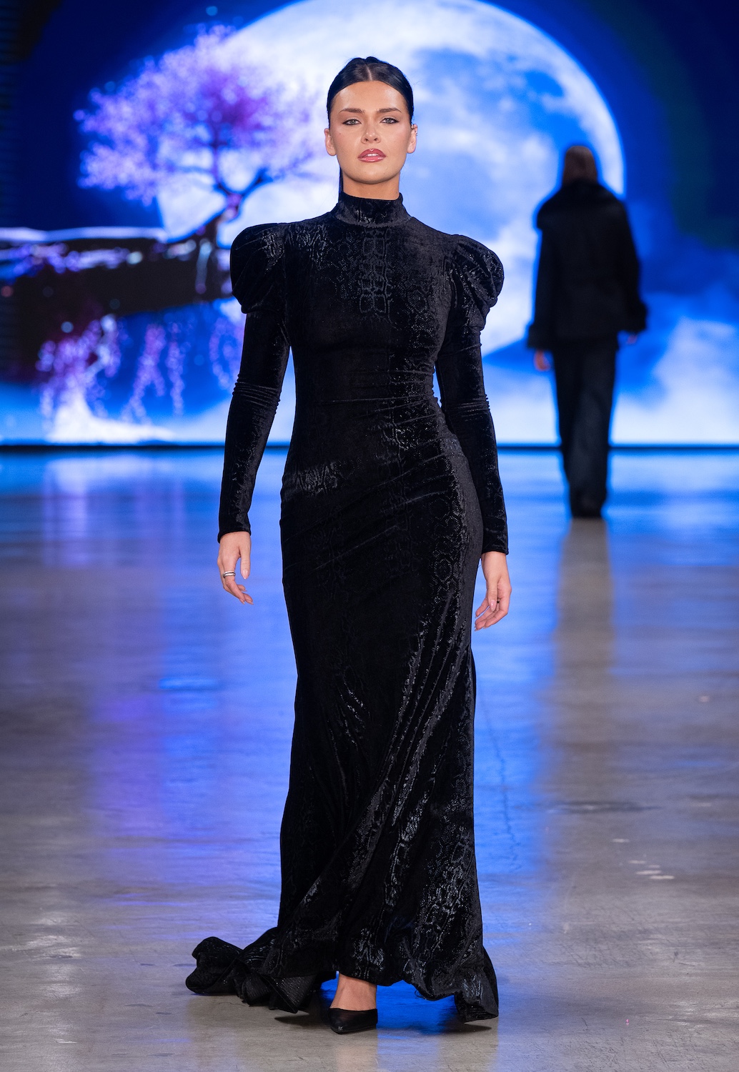 LOS ANGELES, CALIFORNIA - OCTOBER 18: Model Valeria Boiko walks the runway at the Mister Triple X show during Los Angeles Fashion Week Powered By Art Hearts Fashion at The New Mart on October 18, 2025 in Los Angeles, California. (Photo by Mark Gunter/Getty Images for Art Hearts Fashion)