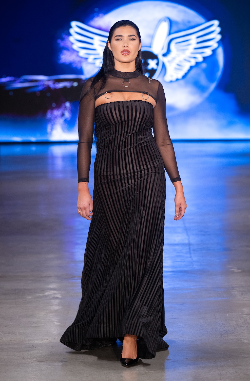LOS ANGELES, CALIFORNIA - OCTOBER 18: Model Patience Taylor walks the runway at the Mister Triple X show during Los Angeles Fashion Week Powered By Art Hearts Fashion at The New Mart on October 18, 2025 in Los Angeles, California. (Photo by Mark Gunter/Getty Images for Art Hearts Fashion)