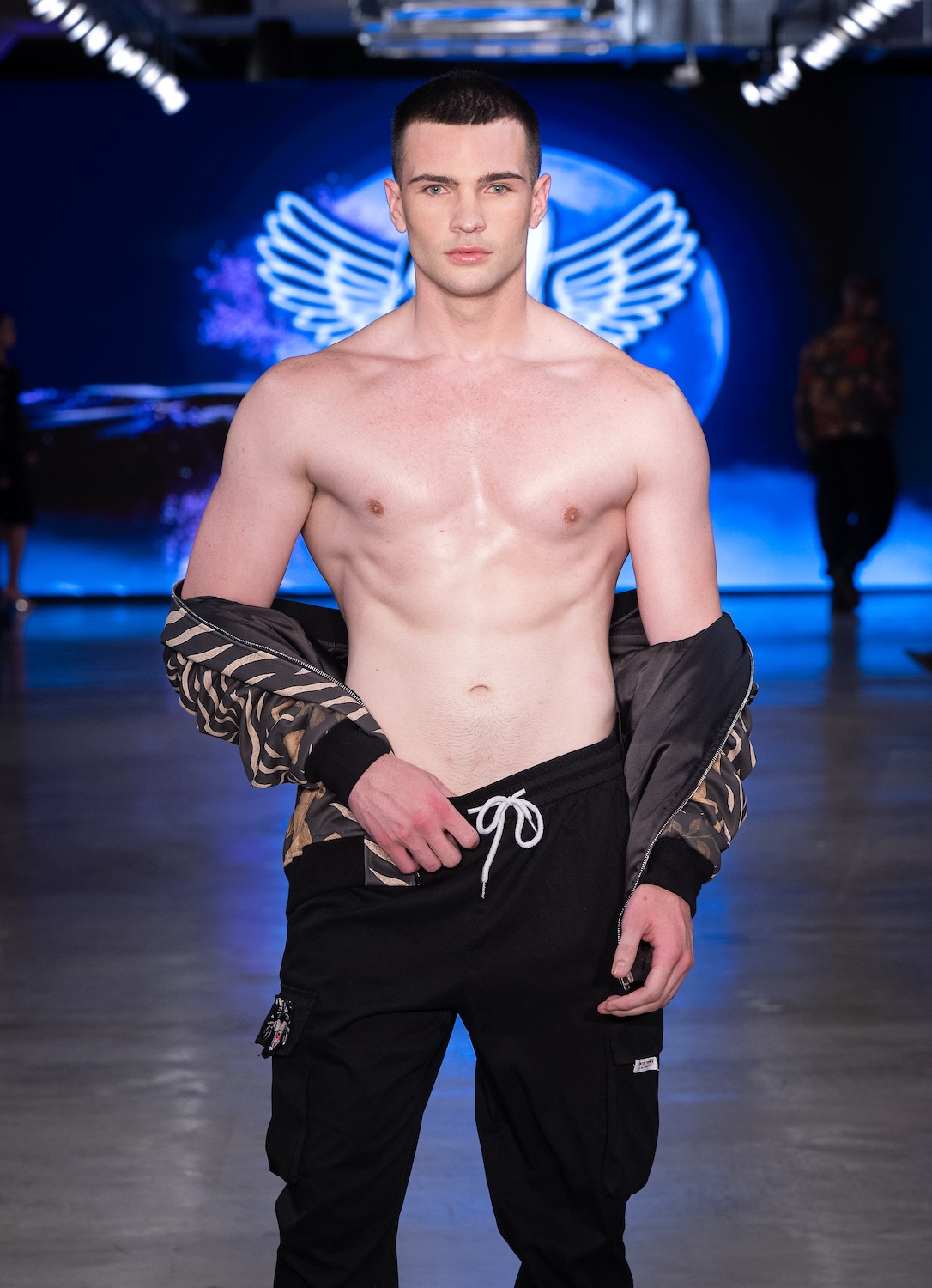 LOS ANGELES, CALIFORNIA - OCTOBER 18: Model Jamieson Nelvis walks the runway at the Mister Triple X show during Los Angeles Fashion Week Powered By Art Hearts Fashion at The New Mart on October 18, 2025 in Los Angeles, California. (Photo by Mark Gunter/Getty Images for Art Hearts Fashion)