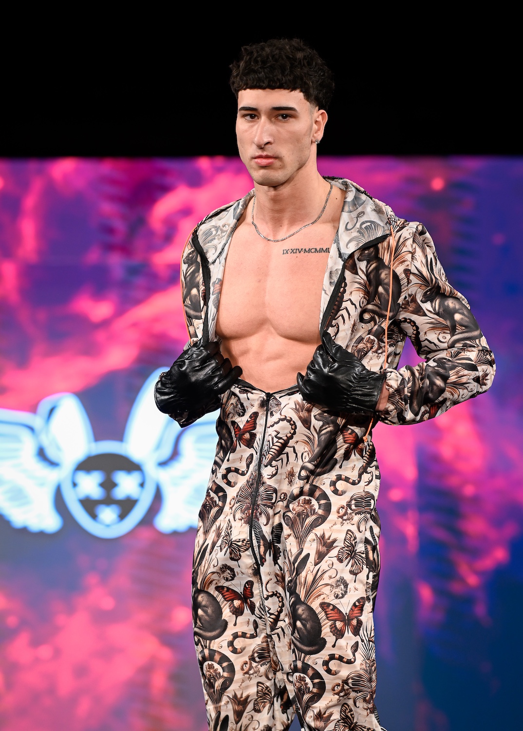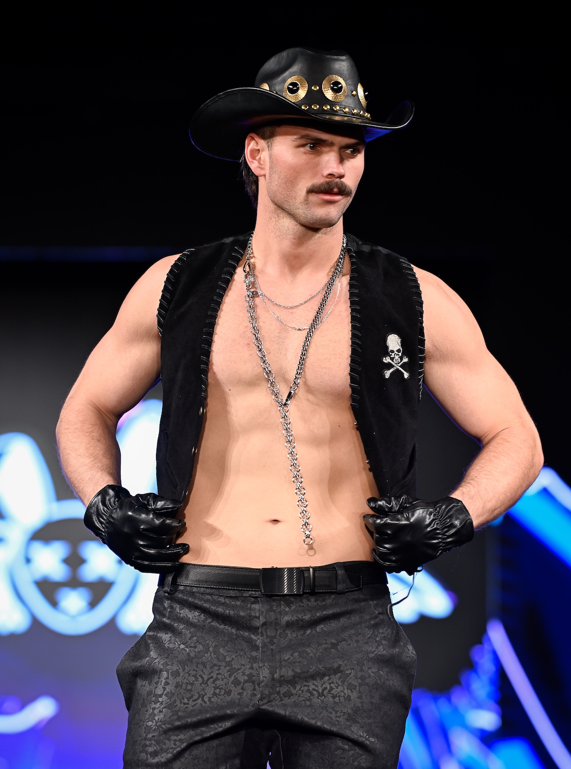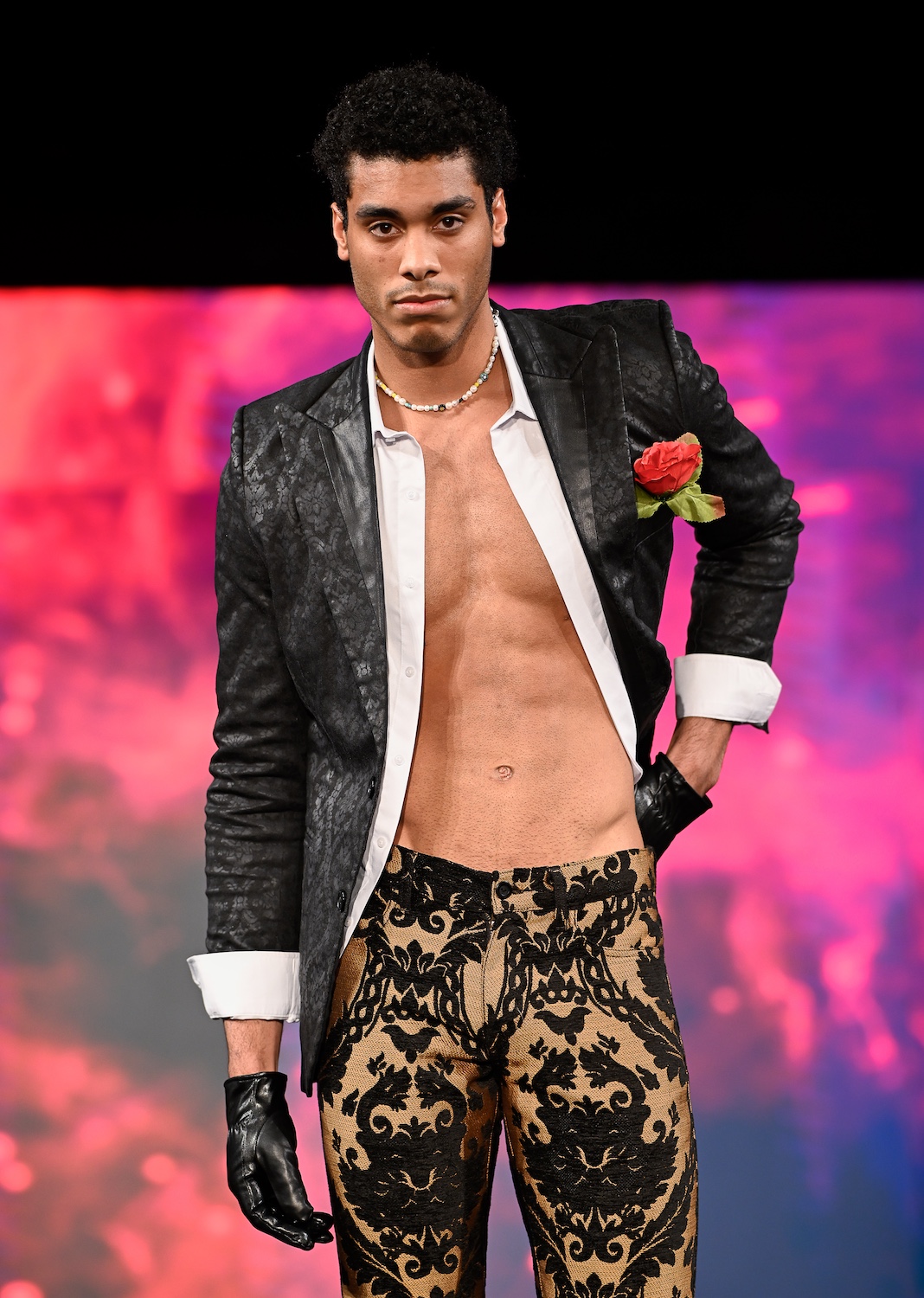 NEW YORK, NEW YORK - FEBRUARY 09: Model Colin Flynn walks the runway at the Chavelis Playhouse show during New York Fashion Week Powered By Art Hearts Fashion at The Angel Orensanz Foundation on February 09, 2025 in New York City. (Photo by Mark Gunter/Getty Images for Art Hearts Fashion)