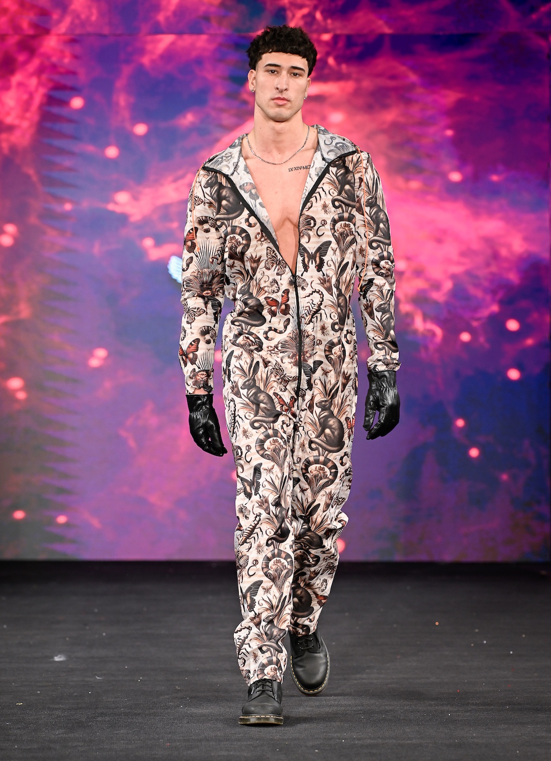 NEW YORK, NEW YORK - FEBRUARY 09: Dan Wintry walks the runway at the Soid Studios show during New York Fashion Week Powered By Art Hearts Fashion at The Angel Orensanz Foundation on February 09, 2025 in New York City. (Photo by Mark Gunter/Getty Images for Art Hearts Fashion)