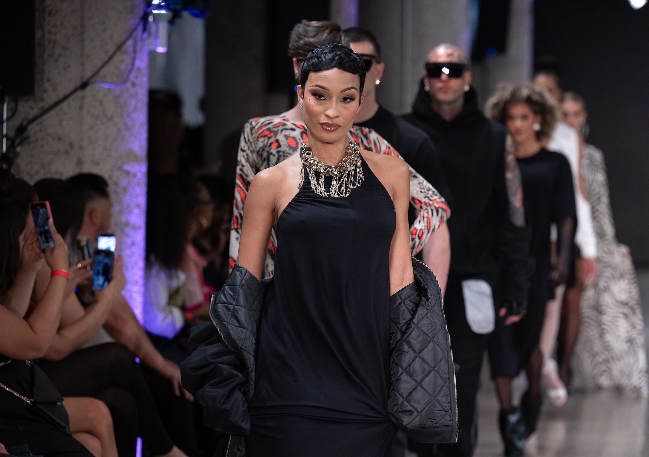 LOS ANGELES, CALIFORNIA - OCTOBER 18: Models walk the runway at the Richard Hallmarq show during Los Angeles Fashion Week Powered By Art Hearts Fashion at The New Mart on October 18, 2025 in Los Angeles, California. (Photo by Mark Gunter/Getty Images for Art Hearts Fashion)