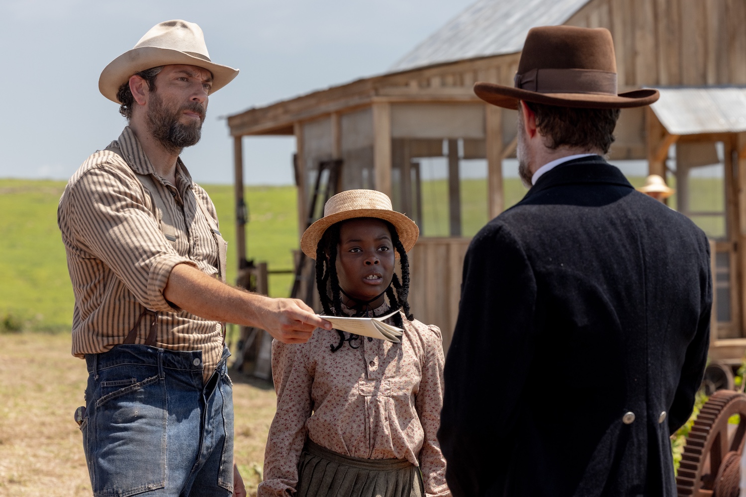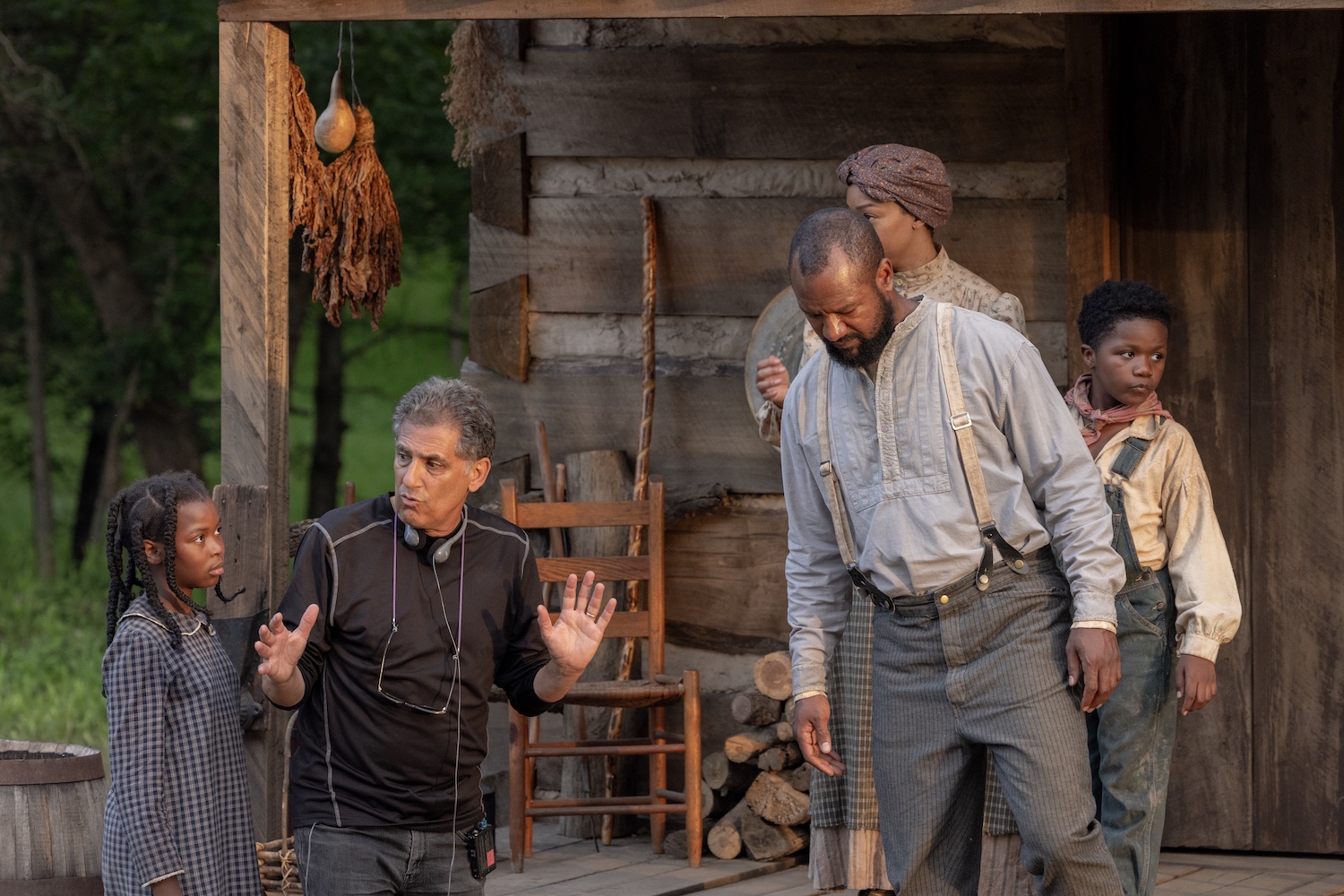 (L to R) Actor Naya Desir-Johnson, director Cyrus Nowrasteh and actor Kenric Green on the set of SARAH'S OIL, from Amazon MGM Studios.