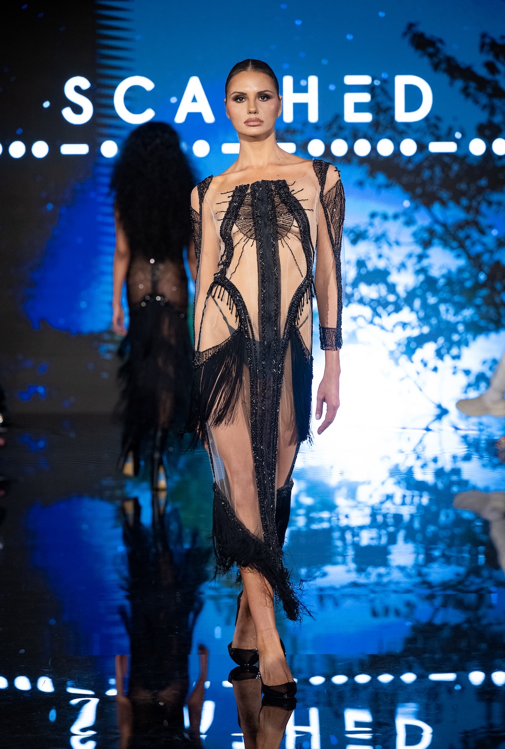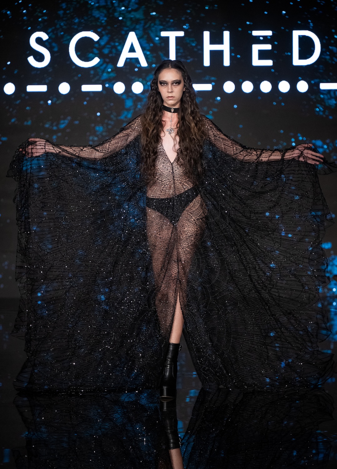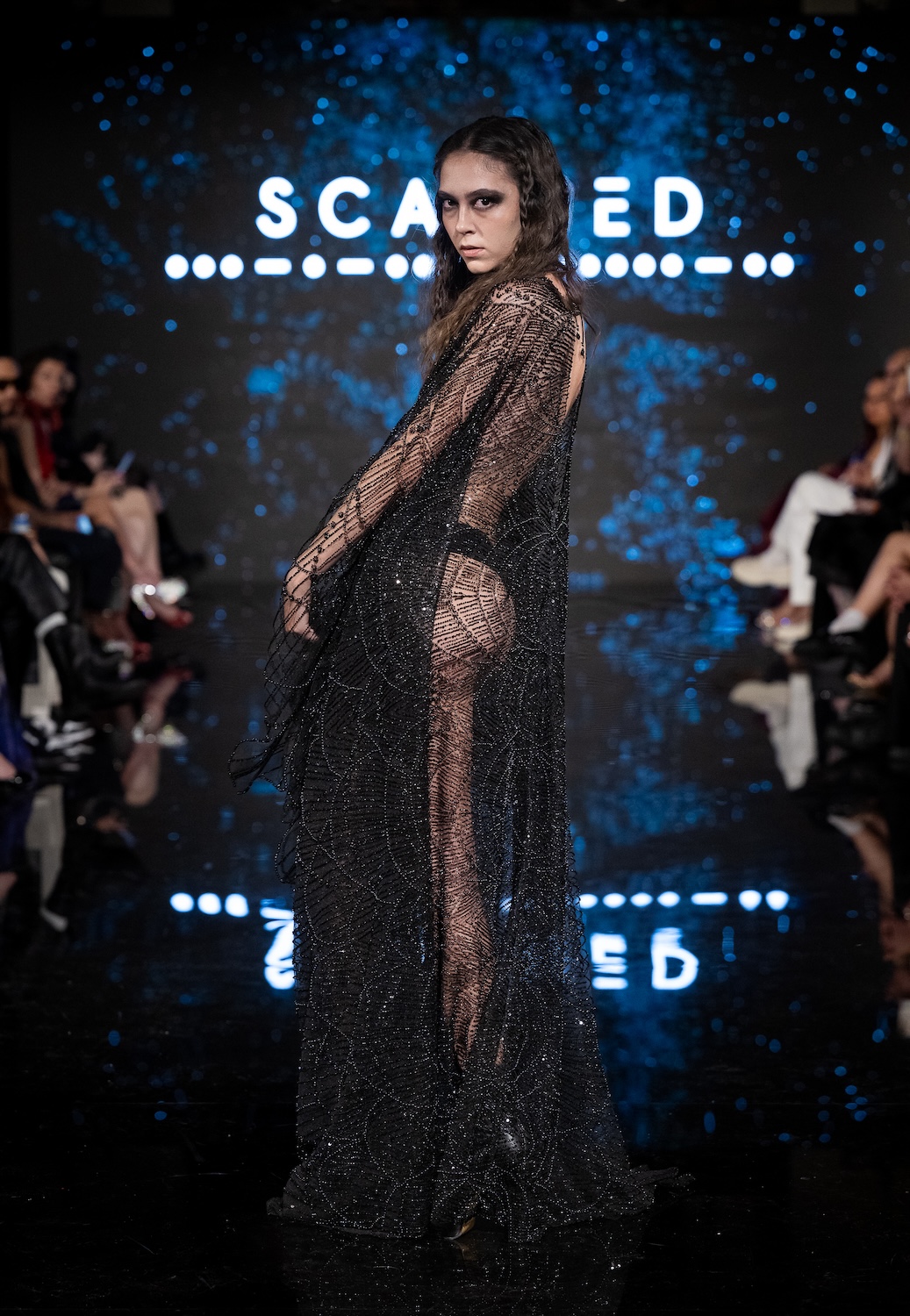 The collection highlights Scathed Fashion’s design aesthetic, featuring bold concepts, modern silhouettes, and visually distinctive runway looks captured during the show.