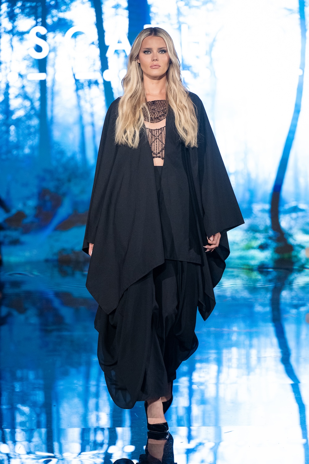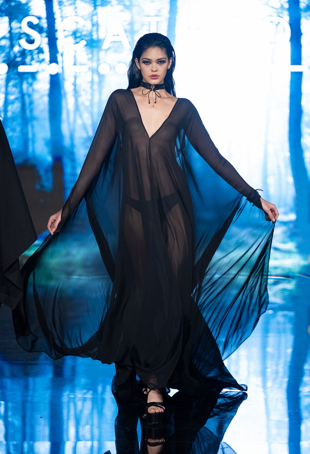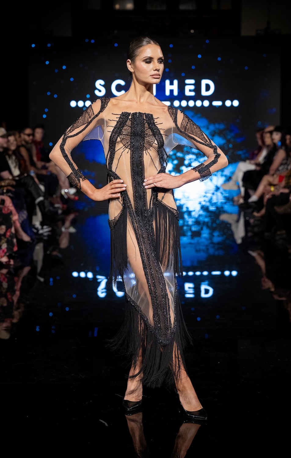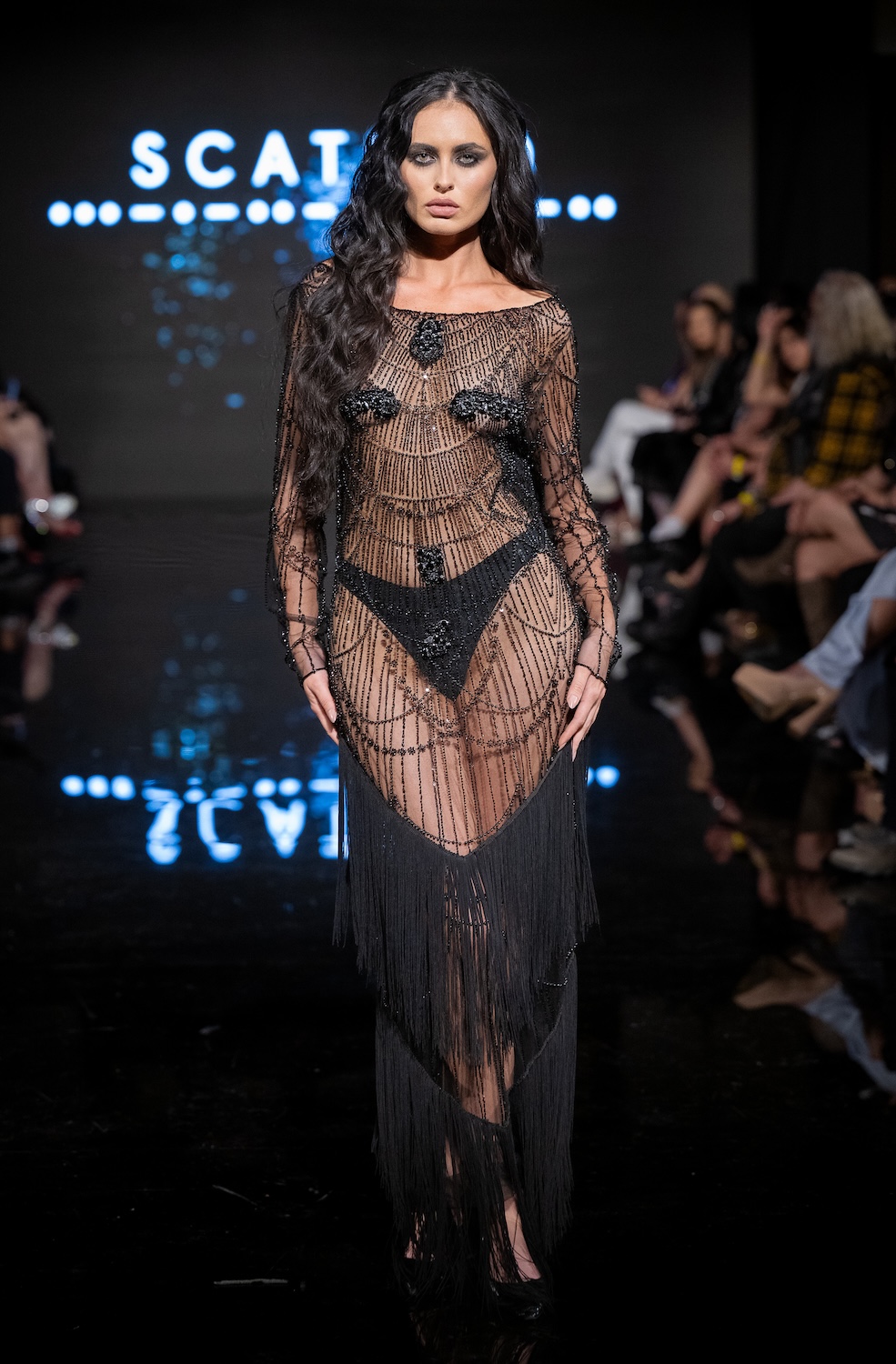 The collection highlights Scathed Fashion’s design aesthetic, featuring bold concepts, modern silhouettes, and visually distinctive runway looks captured during the show.