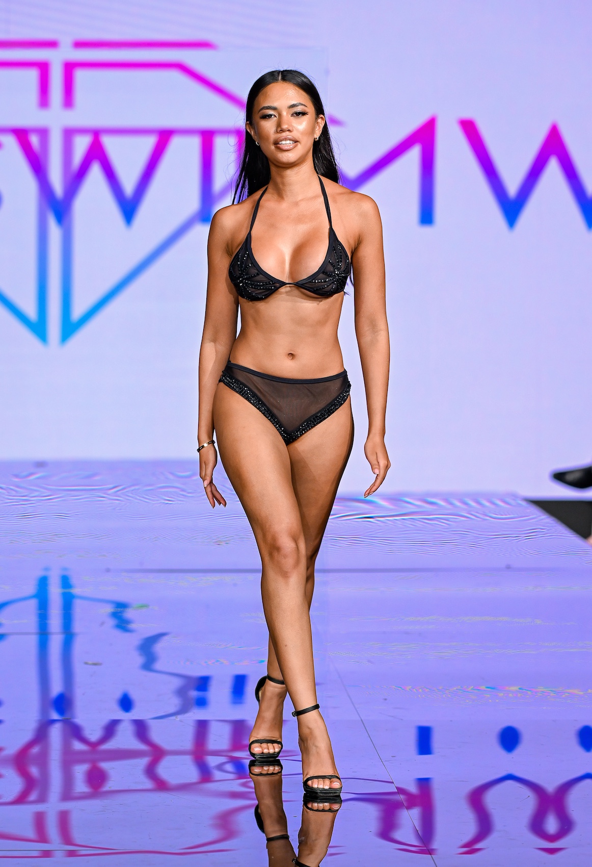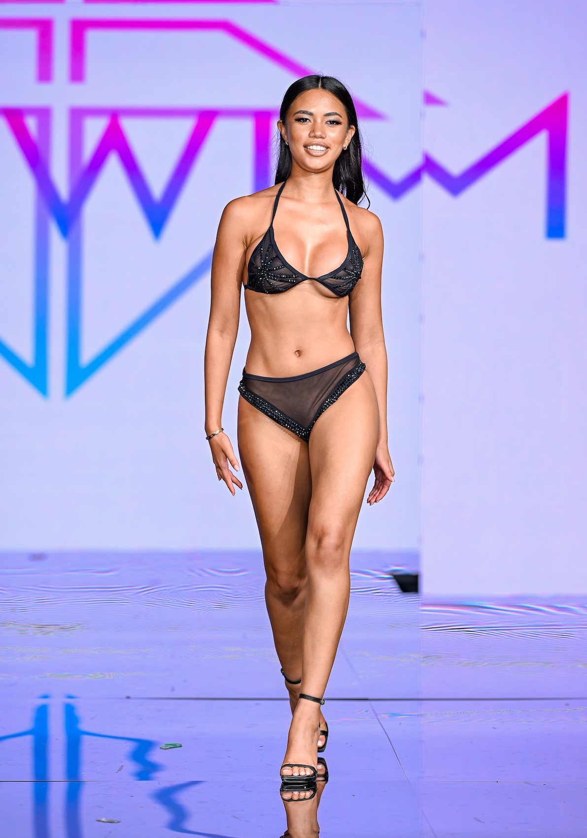 MIAMI BEACH, FLORIDA - MAY 30: A model walks the runway at the Slay Swimwear Show during Miami Swim Week Powered By Art Hearts Fashion at Eden Roc Hotel on May 30, 2025 in Miami Beach, Florida. (Photo by Arun Nevader/Getty Images for Art Hearts Fashion)